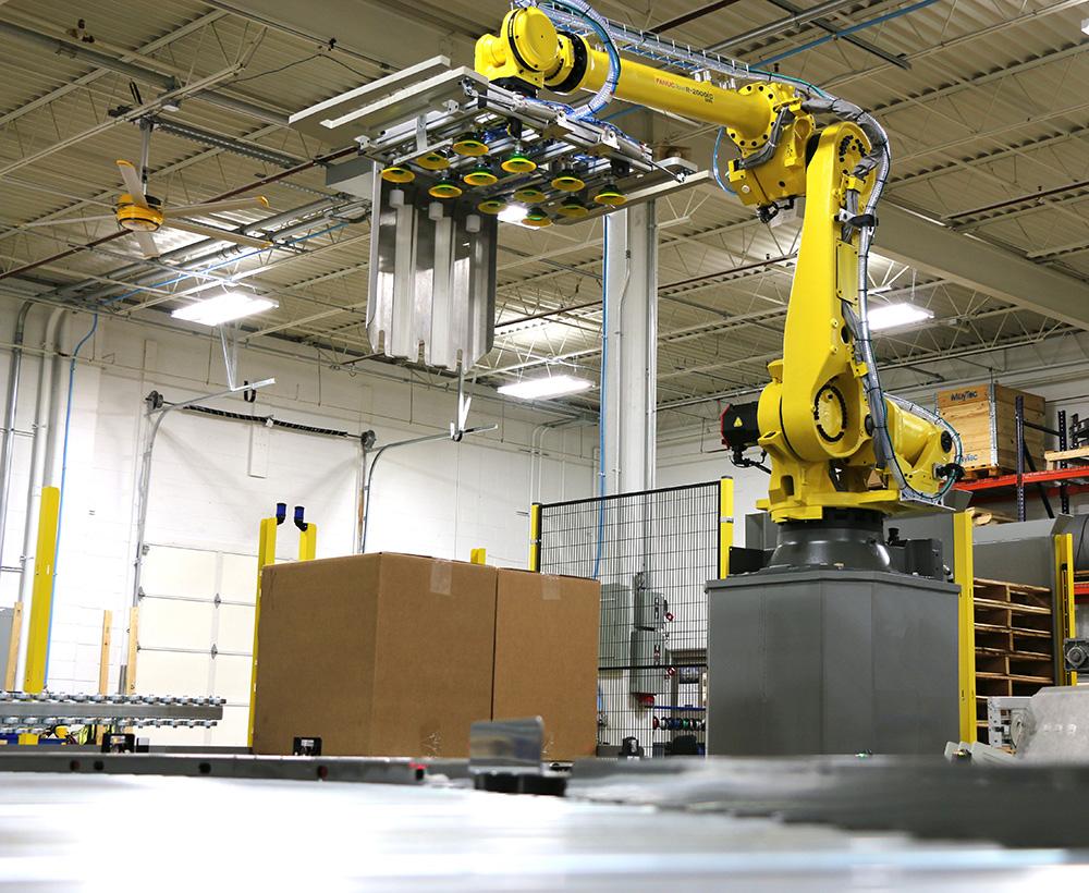 機器人自動上下料是指通過工業機器人實現工件在加工設備(如機床、注塑機等)與物料臺之間的自動化裝卸作業,是智能制造生產線的關鍵環節。該系統主要由工業機器人、視覺檢測系統、抓取夾具、物料輸送線及控制系統組成:機器人搭載專用夾具(如真空吸盤、機械爪)精準抓取工件,視覺系統對物料位置、姿態進行實時檢測與校正,確保上下料精度;控制系統協調機器人與加工設備的動作時序,實現全流程自動化。